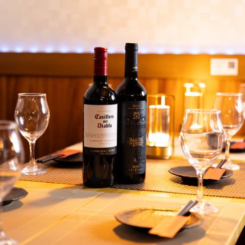 SNS映える空間作りで特別なお酒と料理を楽しめる☆スペシャルワインをはじめ豊富なお酒をご用意。